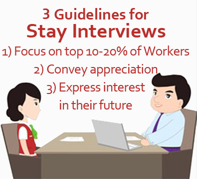 Stay interviews focus on your top performers—the top 10% or 20% of your workers who set the standard for performance and productivity and make your life so much easier. Communicating your appreciation of their contributions and interest in their future career development within your organization in general and on your team specifically is critical. This type of engagement exercise shouldn’t ever seem artificial, superficial, or insincere, but it may be something that your people aren’t used to or otherwise expecting from you. Therefore, here’s a way to ease into a conversation with someone you’d hate to lose to some other organization should an opportunity come their way.